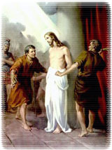 Disse-Lhe Pilatos: "Logo, Tu és rei!" Jesus retorquiu: "Tu o dizes! Eu sou Rei! Para isso nasci e para isso vim ao mundo, a fim de dar testemunho da Verdade. Todo aquele que vive da Verdade escuta a Minha voz." Pilatos replicou-Lhe: "Que é a verdade?" Dito isto, foi ter de novo com os judeus e disse-lhes: "Não acho n'Ele culpa alguma. Vós tendes por costume que eu vos solte alguém pela Páscoa. Quereis que vos solte o Rei dos judeus?" Mas eles gritaram de novo: "Esse não, solta Barrabás." Ora Barrabás era um salteador. Então, Pilatos mandou que levassem Jesus e O açoitassem.
