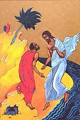 Depois de terem comido, Jesus perguntou a Simão Pedro: «Simão, filho de João, tu amas-me mais do que estes?» Pedro respondeu: « Sim, Senhor, tu sabes que eu sou deveras teu amigo.» Jesus disse-lhe: «Apascenta os meus cordeiros.» Voltou a perguntar-lhe uma segunda vez: «Simão, filho de João, tu amas-me?» Ele respondeu: «Sim, Senhor, tu sabes que eu sou deveras teu amigo.» Jesus disse-lhe: «Apascenta as minhas ovelhas.» E perguntou-lhe, pela terceira vez: «Simão, filho de João, tu és deveras meu amigo?» Pedro ficou triste por Jesus lhe ter perguntado, à terceira vez: 'Tu és deveras meu amigo?' Mas respondeu-lhe: «Senhor, Tu sabes tudo; Tu bem sabes que eu sou deveras teu amigo!» E Jesus disse-lhe: «Apascenta as minhas ovelhas. Em verdade, em verdade te digo: quando eras mais novo, tu mesmo atavas o cinto e ias para onde querias; mas, quando fores velho, estenderás as mãos e outro te há-de atar o cinto e levar para onde não queres.» E disse isto para indicar o género de morte com que ele gavia de dar glória a Deus. Depois destas palavreas, acrescentou: «Segue-me!» (Jo 21, 15-19)